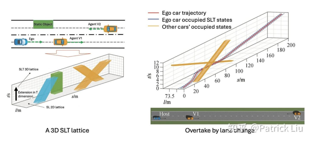 然而,联合时空规划存在明显的难点。首先,直接在高维状态空间中解决非凸问题比使用解耦解决方案更具挑战性且耗时。其次,在时空联合规划中考虑交互更加复杂。我们将在讨论决策时更详细地介绍这一主题。