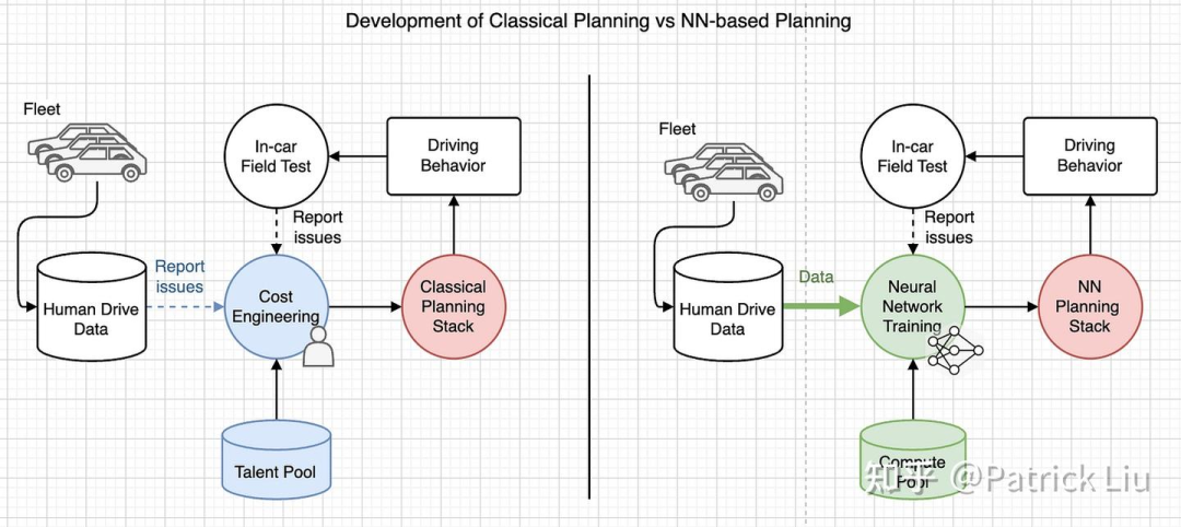 轨迹规划需要更具人性化。可以使用大量的真实驾驶数据进行训练,以开发人性化和接管预测器。扩大计算资源池比维持不断增加的工程团队更具可持续性。
