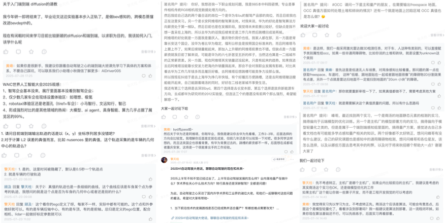 自动驾驶之心知识星球,截止到目前已经完成了产业、学术、求职、问答交流等多个领域的闭环。几个运营的小伙伴每天都在复盘,什么样的社区才是大家需要的?我们有没有什么地方没有考虑到?花拳绣腿的不行、没人交流的也不行、找不到工作的更不行。星球内部为大家梳理了近40+技术路线,无论你是咨询行业应用、还是要找最新的VLA benchmark、综述和学习入门路线,都能极大缩短检索时间。星球还为大家邀请了数十位自动驾驶领域嘉宾,都是活跃在一线产业界和工业界的大佬(经常出现的顶会和各类访谈中哦)。欢迎随时提问,他们将会为大家答疑解惑。
