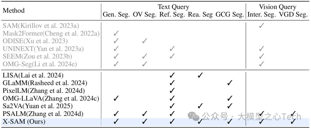 X-SAM 的诞生正是为了填补这一鸿沟。正如论文中所强调的: