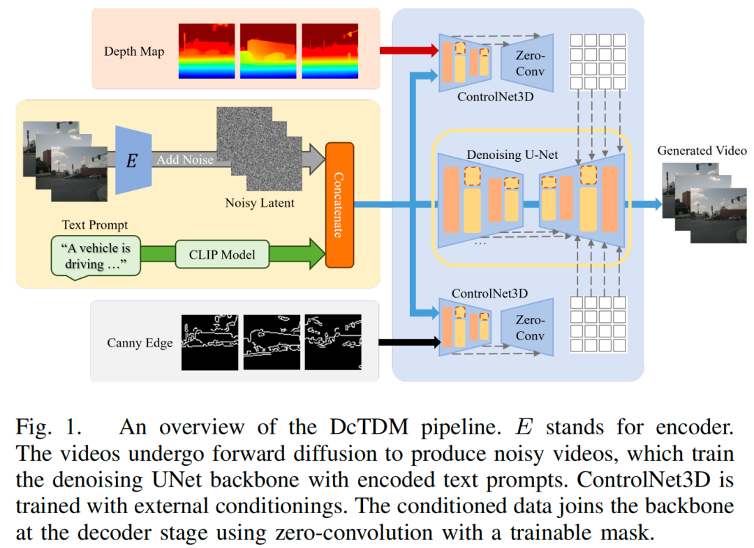 ICRA2025美国东北大学中稿的最新工作!扩散模型已被证明在从学习到的分布中生成高质量图像方面非常有效,但其在时间域的应用,尤其是在驾驶场景中的应用,仍未得到充分探索。本文的工作通过扩展扩散模型来生成逼真的长时间驾驶视频,解决了现有仿真中的关键挑战,如数据质量有限、多样性和高成本。本文提出了双条件时间扩散模型(DcTDM),这是一种开源方法,通过引导帧转换来结合双条件来增强时间一致性。除了DcTDM,本文还推出了DriveSceneDDM,这是一个全面的驾驶视频数据集,包含文本场景描述、密集深度图和坎尼边缘数据。本文使用常见的视频质量指标对DcTDM进行了评估,结果表明,通过生成长达40秒、节奏一致且连贯的驾驶视频,DcTDM的性能优于其他视频扩散模型,在一致性和帧质量方面提高了25%以上!