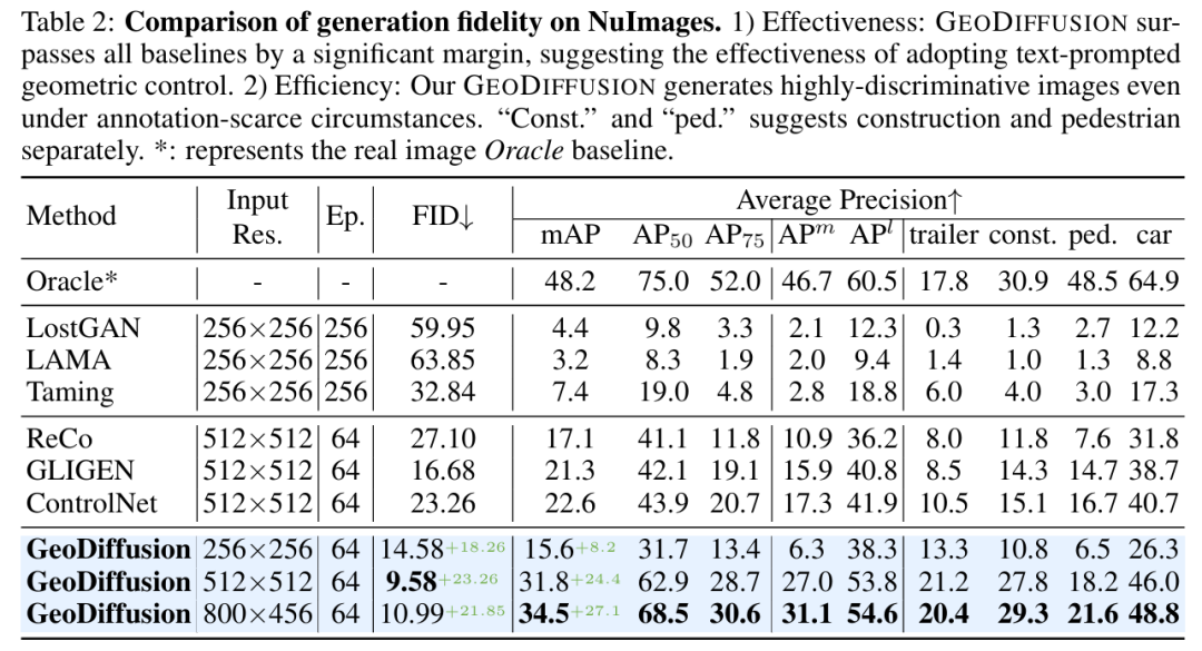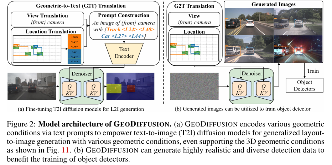 与先前的L2I方法不同,本文的GEODIFFUSION不仅能够编码边界框,还能够编码自动驾驶场景中的额外几何条件(如相机视角)。大量实验表明,GEODIFFUSION在保持训练时间快4倍的同时,性能优于先前的L2I方法。据本文所知,这是首次采用扩散模型进行具有几何条件的布局到图像生成,并证明L2I生成的图像有助于提高目标检测器性能的工作。