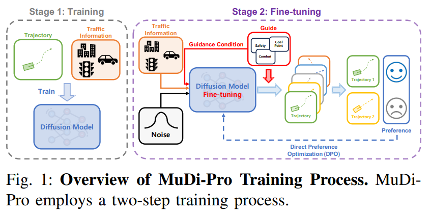 基于扩散的模型在利用真实世界驾驶数据生成真实且多样的交通场景方面的有效性已得到认可。这些模型采用引导采样来整合特定的交通偏好并增强场景真实性。然而,引导采样过程以符合交通规则和偏好可能导致偏离真实世界交通先验,进而可能产生不真实的行为。为解决这一挑战,本文提出了一种多引导扩散模型,该模型采用新颖的训练策略,即使在使用多种引导组合时也能紧密贴合交通先验。该模型采用多任务学习框架,使单个扩散模型能够处理各种引导输入。为提高引导采样精度,本文使用直接偏好优化(DPO)算法对模型进行微调。该算法基于引导分数优化偏好,有效应对引导采样微调过程中昂贵且常不可微分的梯度计算所带来的复杂性和挑战。在 nuScenes 数据集上的评估表明,本文的模型为平衡交通场景生成中的真实性、多样性和可控性提供了强有力的基准。