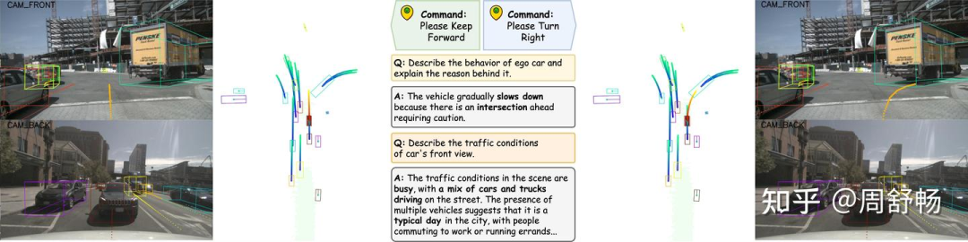 阶段3 (轨迹规划微调): 联合优化整个模型(视觉编码器可选冻结),使其在给定视觉输入、Ego状态和驾驶指令(如“请右转”)的情况下,自回归地生成Ego车辆的未来轨迹点。