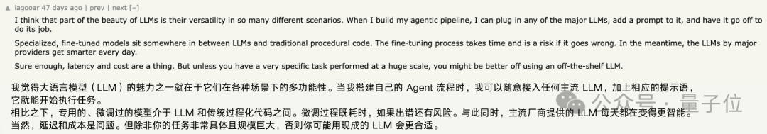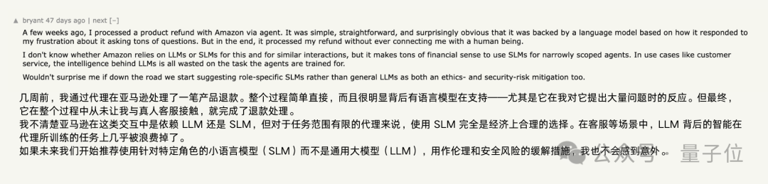 例如,就有网友分享了自己在Amazon处理产品退款的心得,他认为在这种简单的任务中,使用小模型比使用大型语言模型更具成本效益。