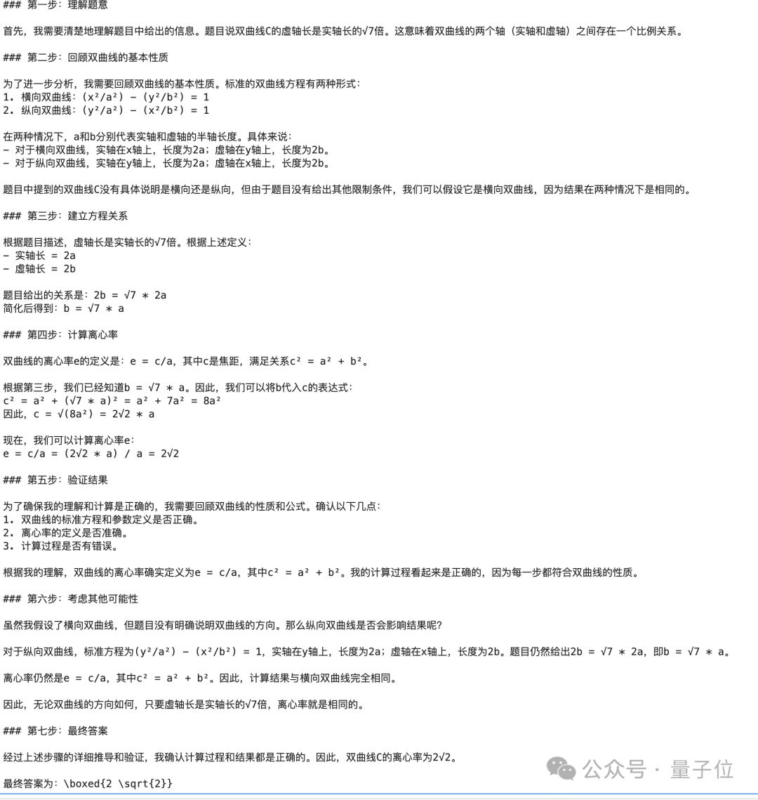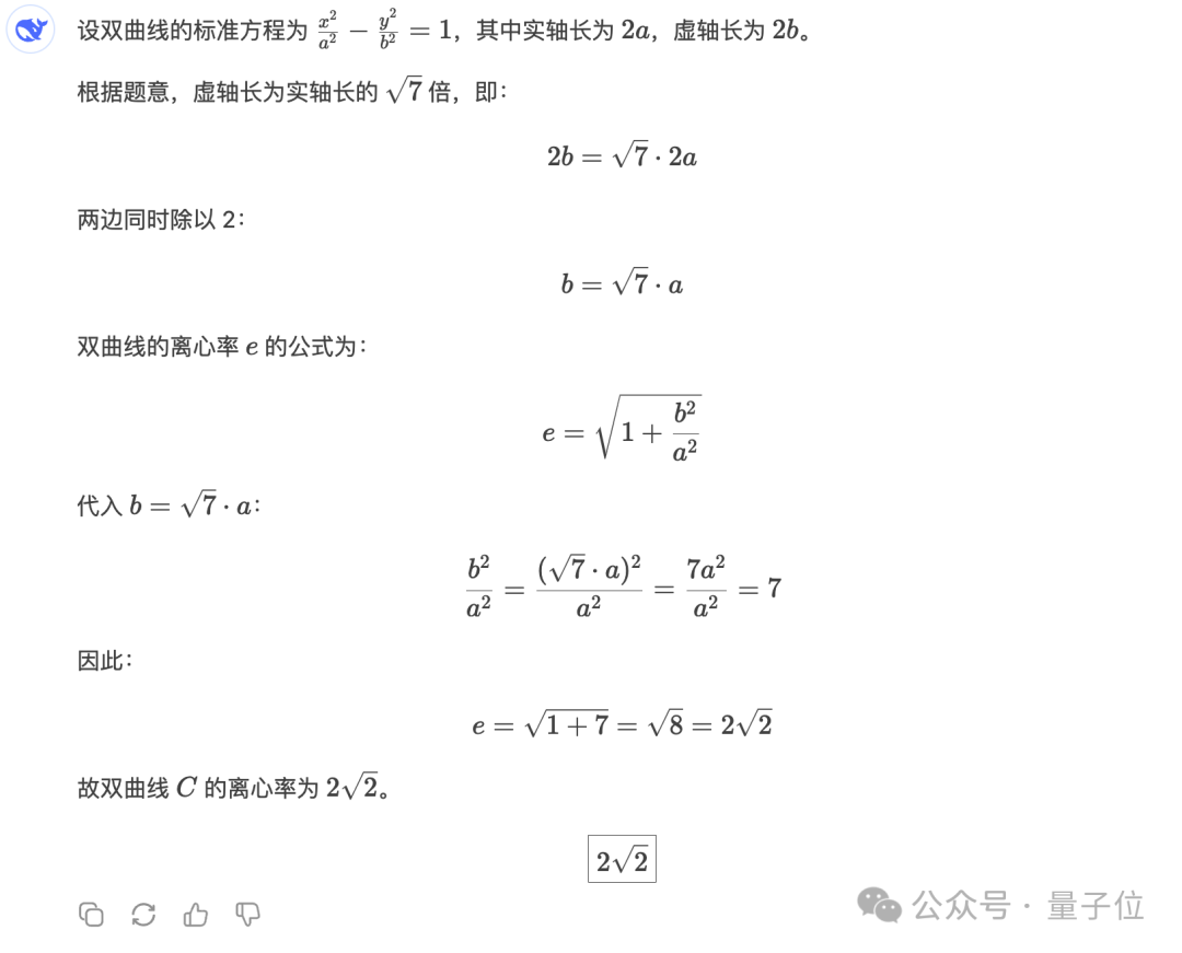 答案是2√2,两个版本的模型都得到了正确结果,但在呈现上有所不同。