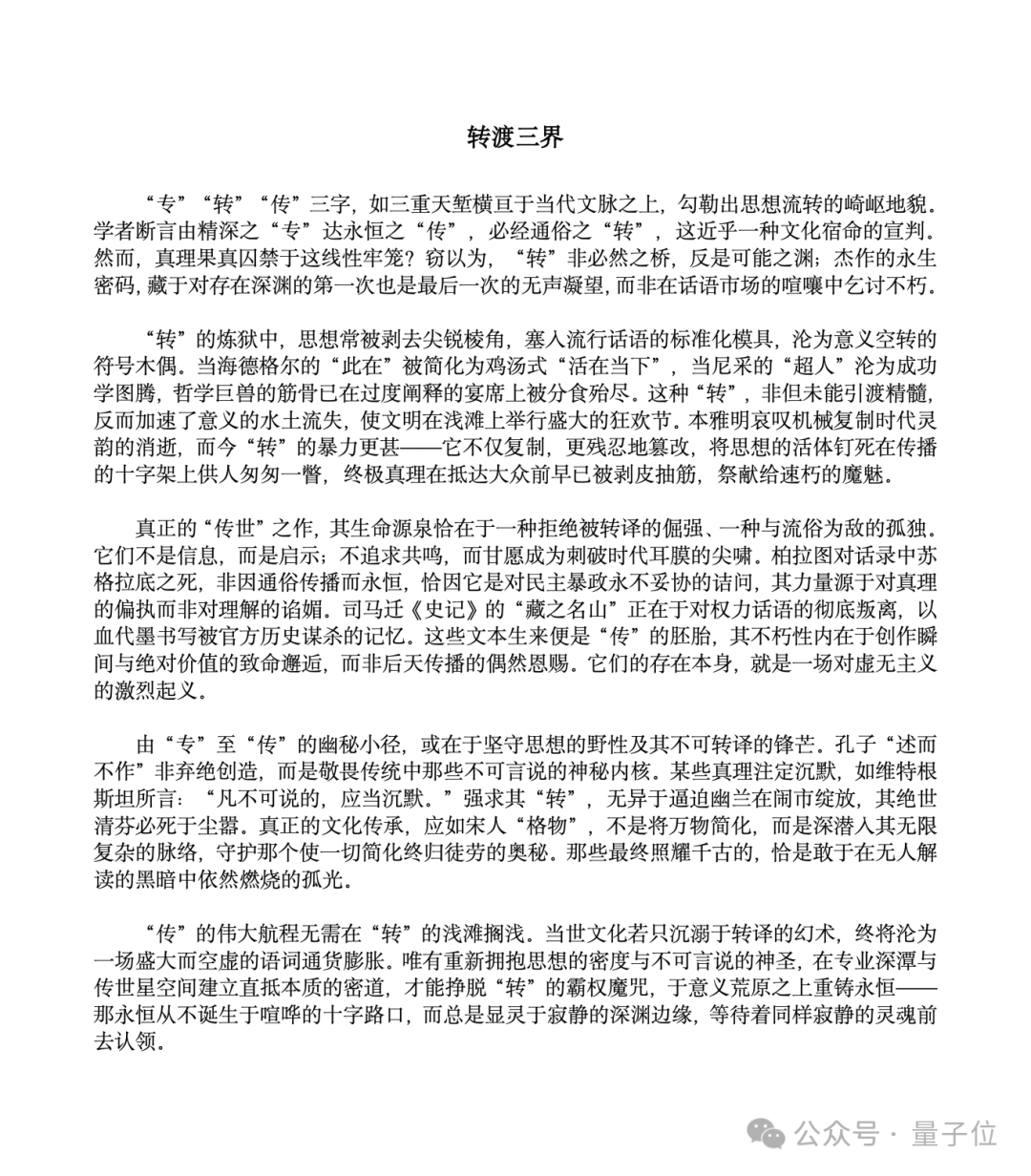 有学者用“专”“转”“传”概括当下三类文章:“专”指专业文章;“转”指被转发的通俗文章;“传”指获得广泛传播的佳作,甚至是传世文章。他提出,专业文章可以变成被转发的通俗文章,而面对大量“转”文,读者又不免期待可传世的文章。由“专”到“传”,必定要经过“转”吗?请联系社会生活,写一篇文章,谈谈你的认识与思考。要求:(1)自拟题目;(2)不少于800字。