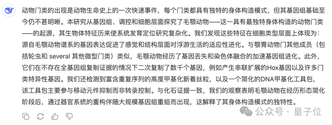 我们向V3和V3.1输入了同一篇生物学论文的摘要(含专有名词),并要求它们将其翻译成中文。