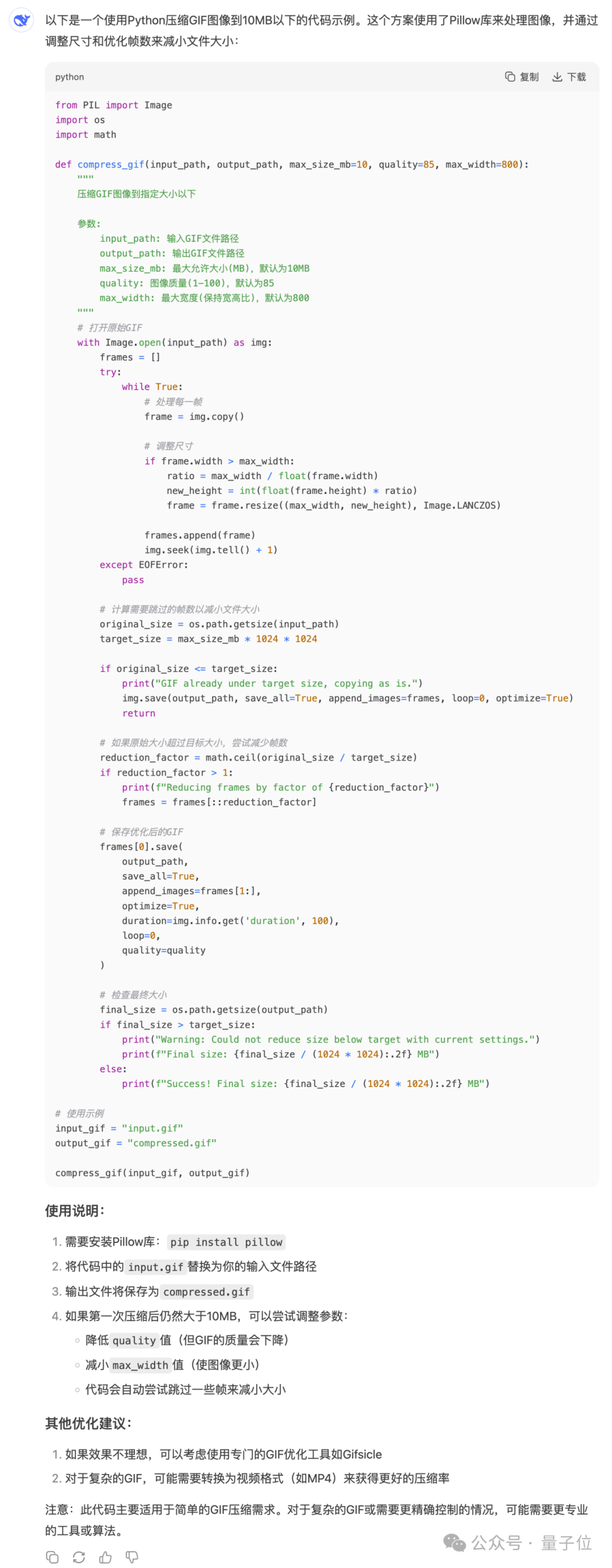 帮我用python写一段代码,把输入的gif图压缩到10M以下。