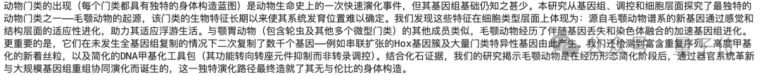 摘要选自Nature最新研究:《独特毛颚动物体型的基因组起源》。