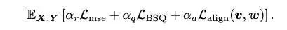 第一个阶段对Text Encoder、Visual Encoder、Quantizer和Visual Decoder进行训练,损失函数包括图片重建损失、量化损失和对比学习的Loss,这个阶段主要是优先学习语义丰富的特征表达,而不是视觉重建,所以也没有Perceptual Loss和Adversarial Loss,视觉特征量化方式为二进制球量化(Binary Spherical Quantization, BSQ)。
