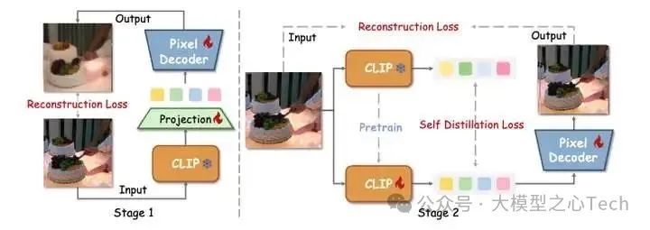 损失函数包括文本-图片对比学习Loss和特征的蒸馏Loss,