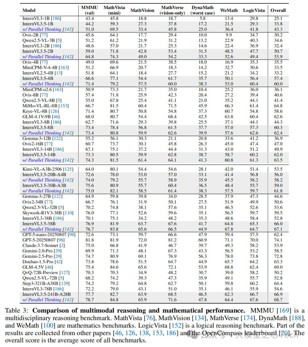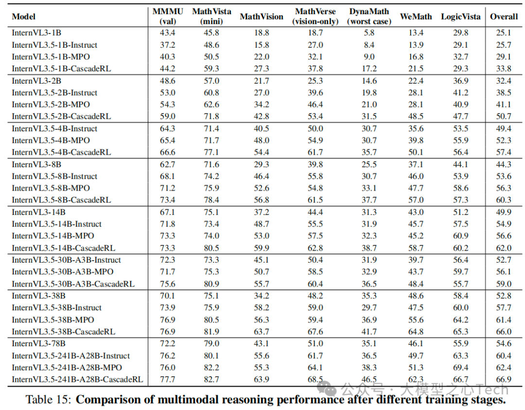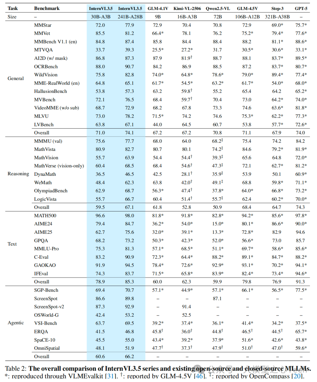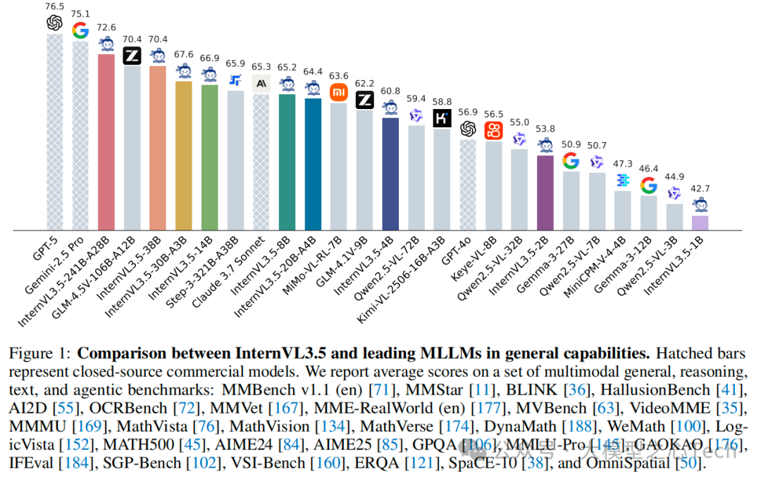 上海AI Lab又发力了!刚刚推出了开源多模态模型InternVL 3.5,在通用性、推理能力和推理效率方面显著推进了InternVL系列的发展!与前代产品相比,InternVL3.5系列通过我们提出的级联强化学习(Cascade RL)框架实现了更优的性能,该框架通过离线RL阶段实现稳定收敛,并通过在线RL阶段进行精细对齐。这种由粗到细的训练策略在下游推理任务(例如MMMU和MathVista)上带来了显著提升。为了优化效率,我们提出了一种视觉分辨率路由器(ViR),它能动态调整视觉标记的分辨率而不会损害性能。结合ViR,我们提出的解耦视觉-语言部署(DvD)方法将视觉和语言处理组织成一个异步的三阶段流水线,从而实现重叠执行并最大限度地减少流水线停顿。在一系列基准测试中,InternVL3.5在通用多模态能力、数学和多模态推理、文本理解、图形用户界面(GUI)代理、具身代理和真实世界理解任务上均取得了领先表现,显著缩小了与GPT-5等顶级商业模型的性能差距。我们相信,我们的开源模型和代码将推动多模态AI研究及其在现实世界中的应用。更多前沿大模型信息,欢迎加入大模型之心Tech知识星球~