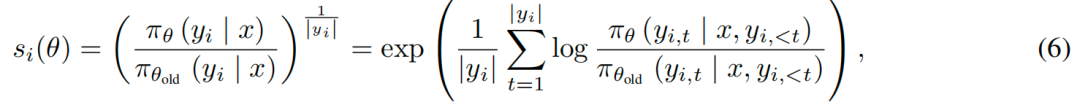 其中重要性采样比率 定义为每个标记比率的几何平均: