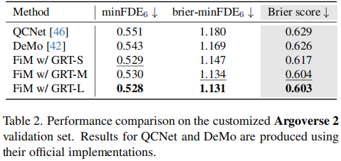 表格2|在定制化的Argoverse2验证集上的性能比较
