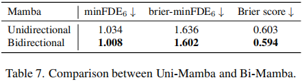 表格7|Uni-Mamba和Bi-Mamba之间的比较
