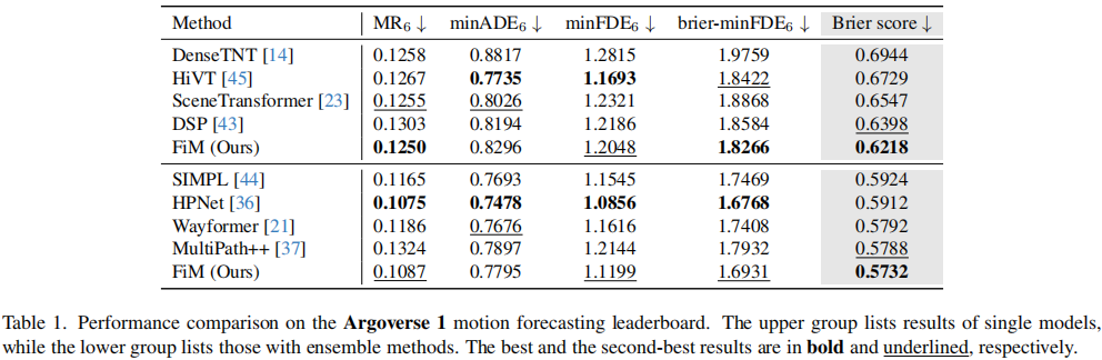 本文在Argoverse 1、Argoverse 2和nuScenes运动预测数据集上对所提出的方法与最先进的方法进行了全面的比较。为简洁起见,本文将所提出的方法称为FiM。