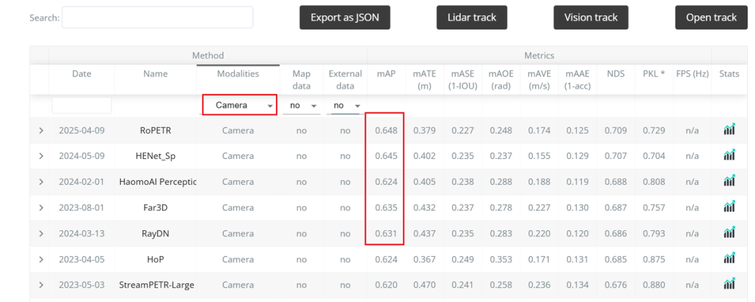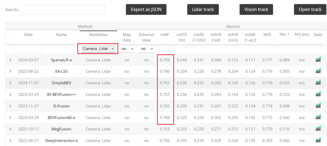 下图是nuScenes中3D检测任务性能对比,上面为纯视觉性能,下方为Lidar+Camera。