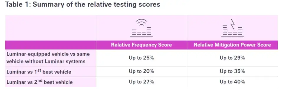 国际保险巨头瑞士再保险(Swiss Re)的测试显示,配备激光雷达的同款车型相较于未配备版本,可避免25%的碰撞事故,事故影响缓解能力提升29% [1]。所以,激光雷达切实地在保证智能驾驶的行车安全。