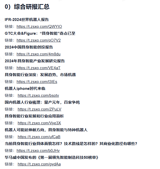 星球内部为大家汇总了大模型、人形机器人等行业相关的研报,第一时间了解行业的发展与工业的落地情况。