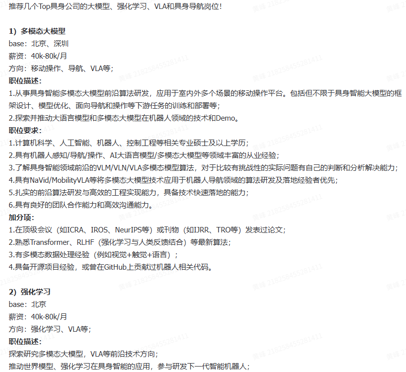具身智能相关工作岗位推荐,第一时间对接企业;