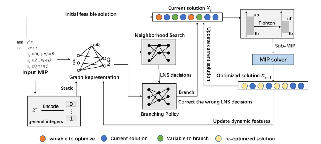 推荐理由:提出了一种名为BTBS-LNS的二进制紧缩分支搜索方法,首次有效解决了基于策略学习的大邻域搜索(LNS)在混合整数规划(MIP)问题中的局限性,实现了与商业求解器Gurobi竞争甚至更优的性能。