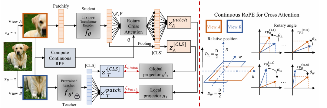 推荐理由:提出了一种名为CR2PQ的连续相对旋转位置查询方法,首次解决了密集视觉对比学习(DRL)中跨视图像素/patch对应的关键问题,通过将离散位置嵌入转换为连续表示,实现了显著的性能提升。