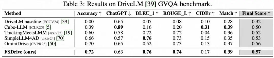 在轨迹规划、未来帧生成和场景理解任务中进行全面评估,验证了FSDrive的有效性。