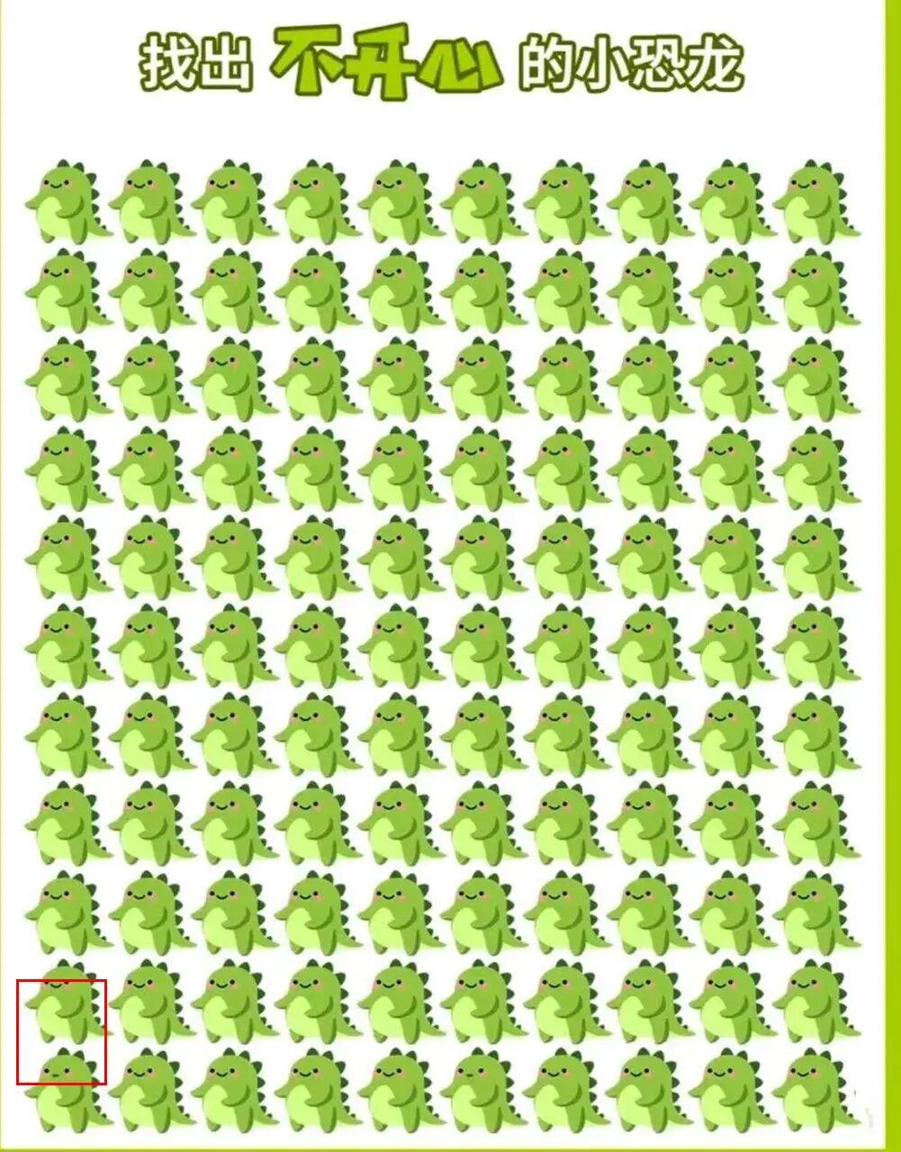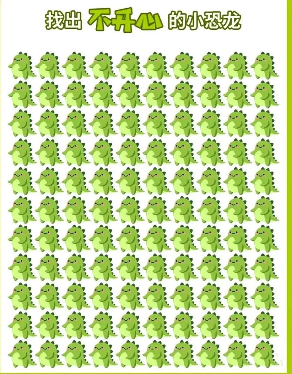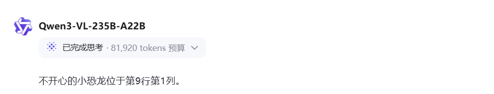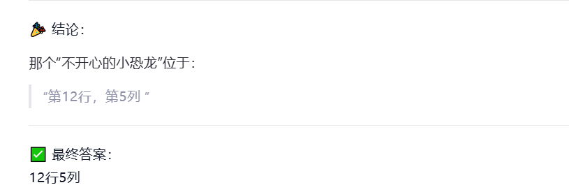 Prompt:找到不开心的小恐龙,并返回行列序号,比如:几行几列。