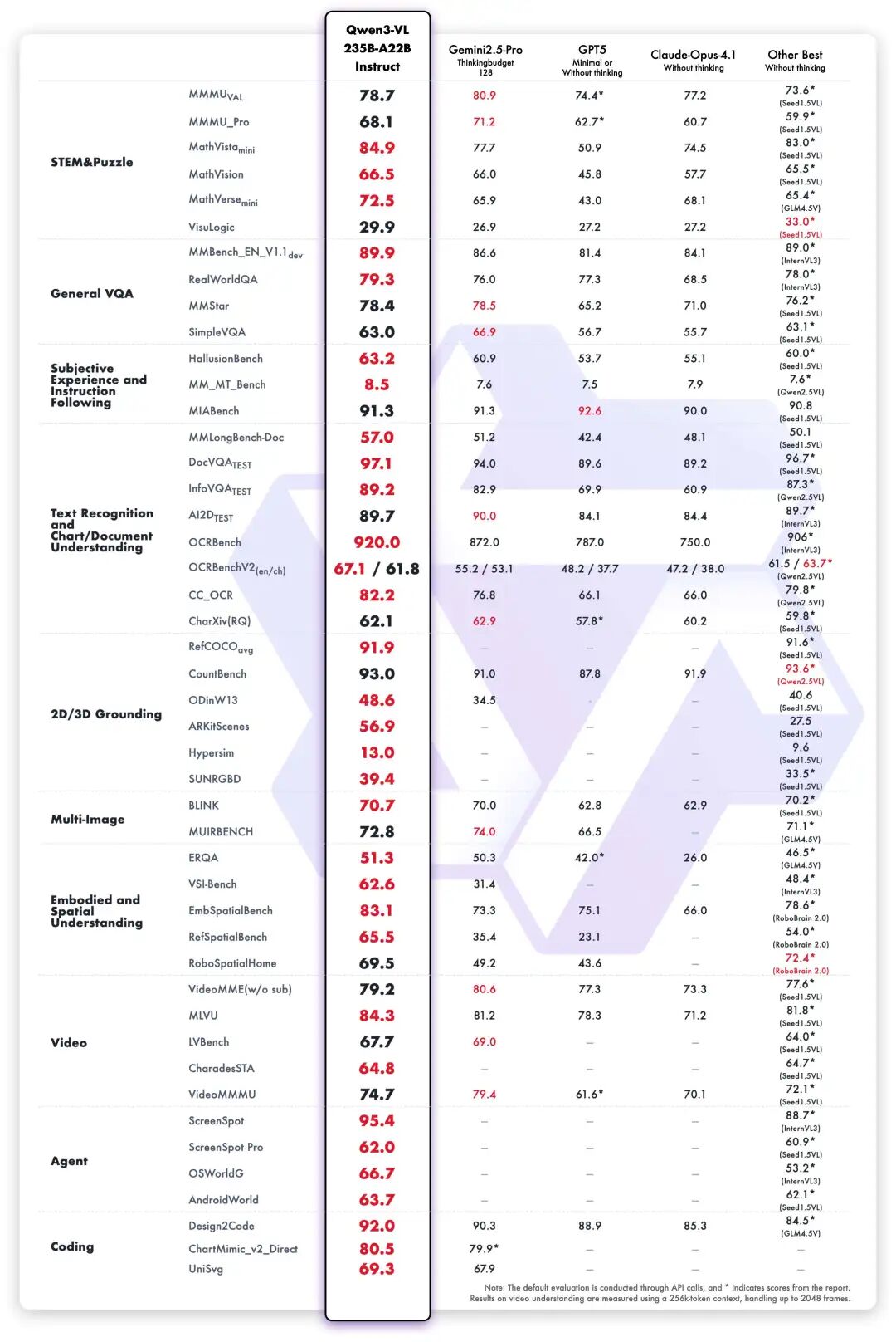 Qwen3-VL的纯文本能力与Qwen3-235B-A22B-2507媲美,相关榜单,