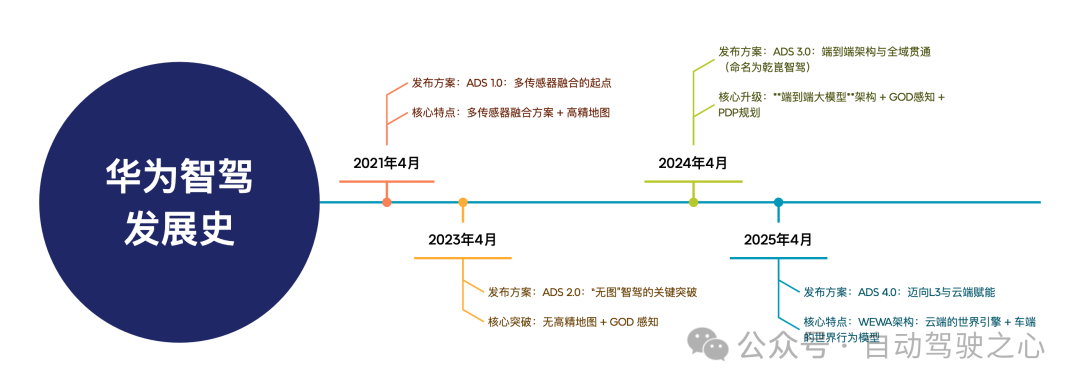华为ADS技术路线的演进,清晰地展现了其从初期的多传感器融合和高精地图依赖,到中期的“无图”化突破和感知算法增强,再到现阶段端到端大模型应用和全域驾驶能力贯通,并最终迈向云端赋能和L3世界模型高阶自动驾驶的历程。