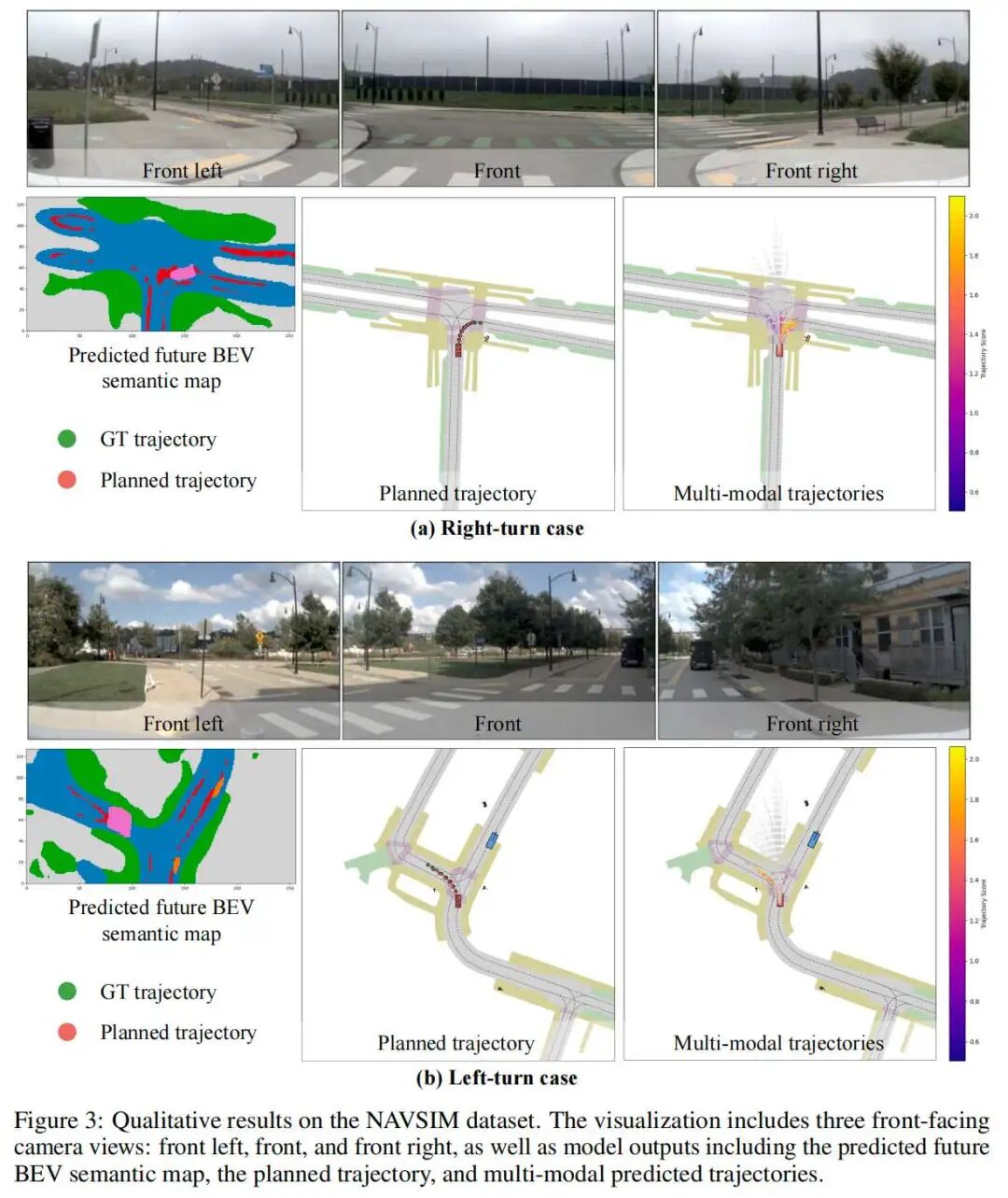 预测的未来BEV语义图能准确反映场景演化(如车辆转弯后的位置变化);