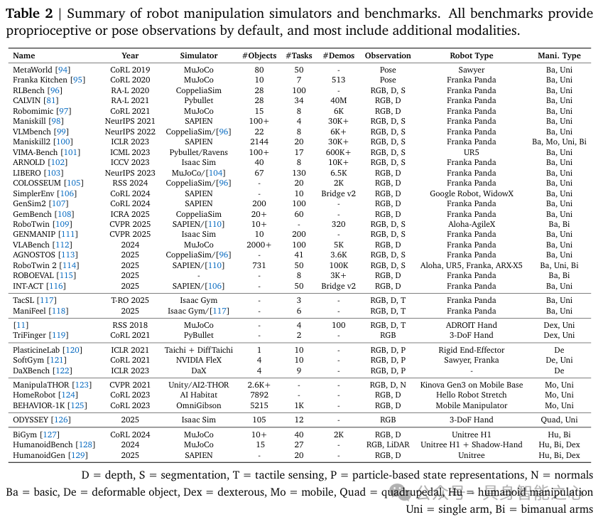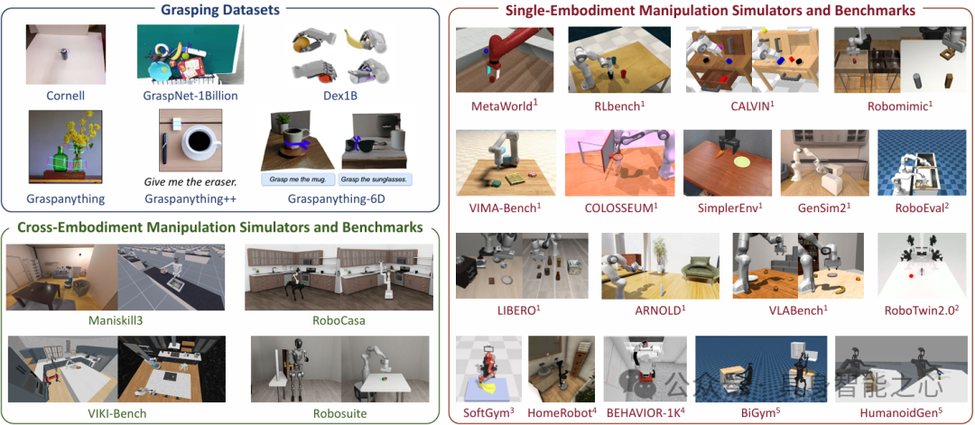 跨 embodiment 仿真器与基准:支持多种异构机器人硬件平台的仿真环境与测试标准。
