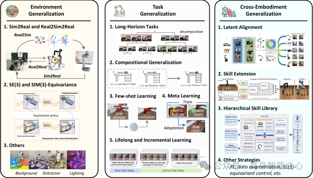 在泛化能力方面,本文将其归纳为三类关键挑战: