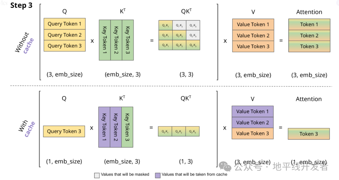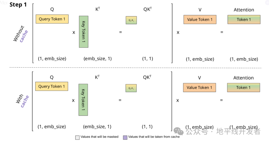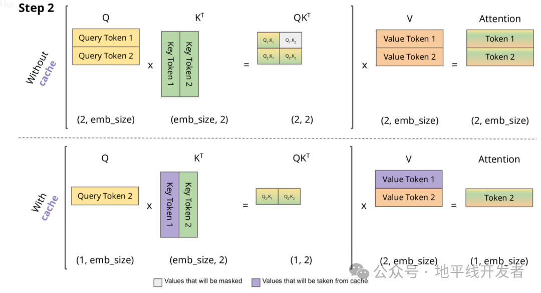 只需计算 新 token 的 K 和 V,然后将其与缓存的值结合使用。