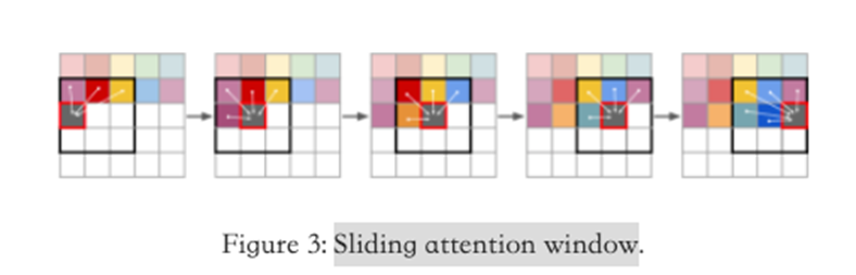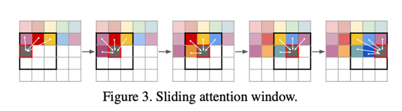 Sliding attention window = 用固定小序列训练 Transformer,用滑动的局部注意力窗口在采样时覆盖整图;它主要解决了注意力二次复杂度导致的高分辨率生成不可扩展的问题,并依赖 VQGAN 的上下文丰富表征与重叠上下文来保持全局一致性。让gpt举个例子: