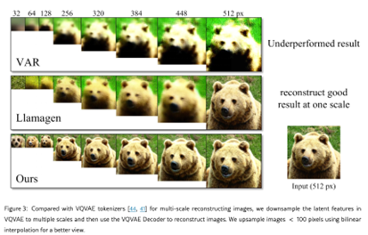 连续语义:不以“上一层累计重建”作为必须条件,而是直接对齐“真值”,从统计学习角度更像一致的似然因子分解,强调相邻尺度的语义连续(作者认为更利于建模扩展的概率分布)。