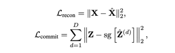 和原来vq-vae不同的地方是,vq-vae一个patch对应一个码本词表,这次rq-vae采用了D个码本词表对应一个patch特征。
