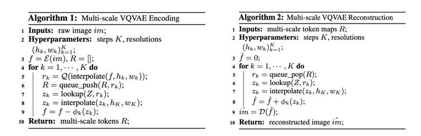 这里的r是token maps,next scale的预测可以condition on之前scale的信息。这点思想,有点类似于RQ-transformer的思路,也是利用到了residual prediction的策略。