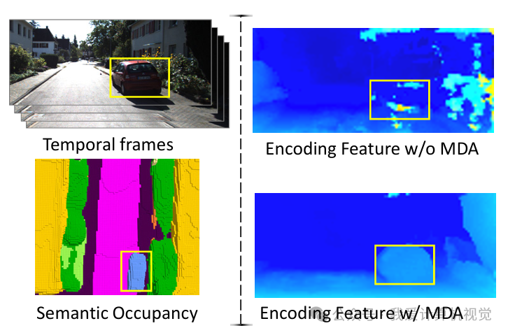 MDA模块的可视化热力图证明,它能有效地从时间和语义占据中高亮并对齐相关的上下文信息。