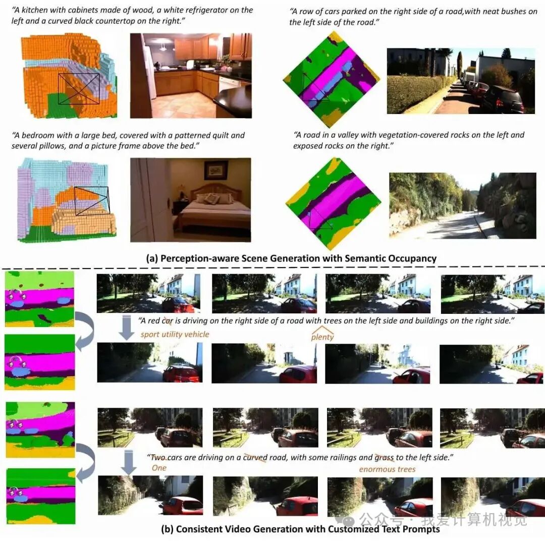 技术突破 (Mamba对齐模块) :设计了新颖的基于Mamba的双重对齐模块 (MDA) ,高效地对齐了相机轨迹、语义Occupancy与扩散特征,确保了生成内容(尤其是视频)的跨视角一致性和几何精确性。