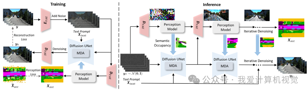 做法:冻结一个预训练好的感知模型权重,仅训练扩散UNet,使其学会在语义Occupancy条件的引导下生成真实场景。