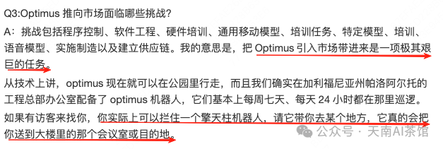 马斯克表示 Optimus 机器人现在全天候在特斯拉总部巡逻,能够引导访客前往房间。