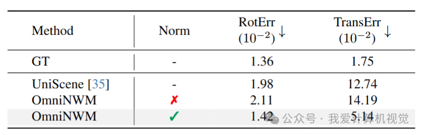 为支持跨数据集、多相机配置下的泛化能力,OmniNWM 对 Ray-map 进行 尺度归一化 与 位姿归一化:
