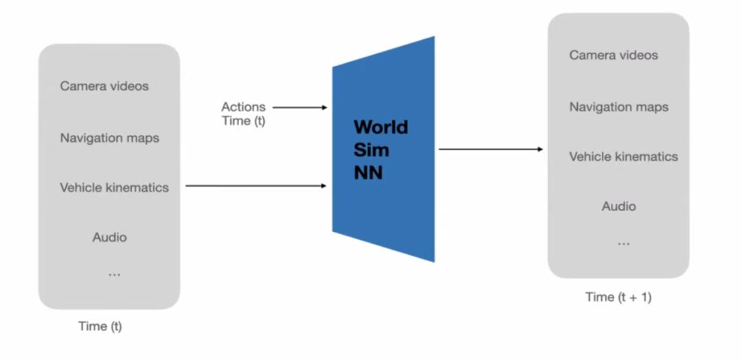 最近,特斯拉在其技术演讲中首次系统展示了内部使用的世界模型(World Model)。特斯拉的世界模型是一个神经网络驱动的虚拟世界生成器,它能根据车辆的状态和控制输入(转向、油门、刹车)实时合成八个摄像头视角的高分辨率视频。
