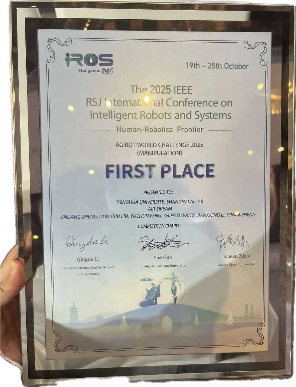 X-VLA 团队基于自主提出的 X-VLA 方法参赛,在多任务、多场景的真实物理操作中展现出卓越的泛化能力与鲁棒性,最终脱颖而出,荣获 全球第一名