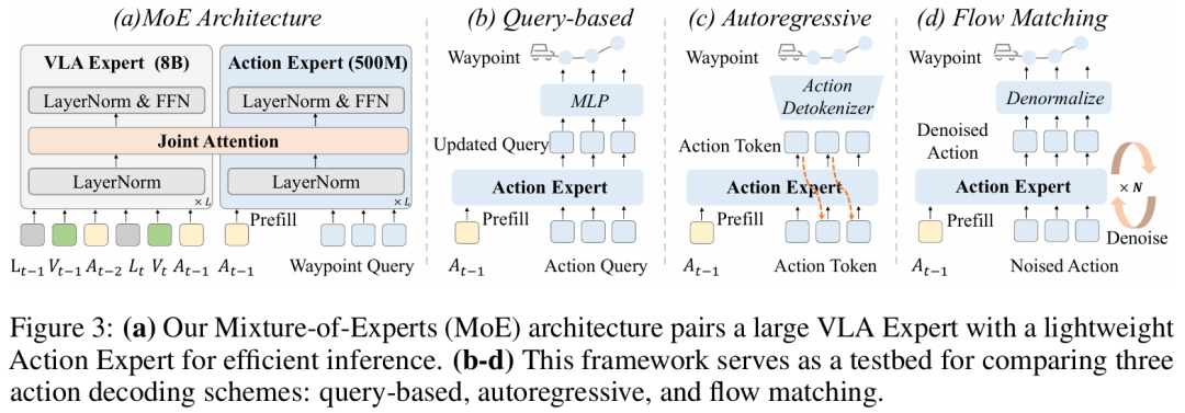 为解决此问题,中科院和华为引望的团队提出了 DriveVLA-W0,一种利用世界模型来预测未来图像的训练范式。为验证DriveVLA-W0的通用性,本文在两种主流VLA架构上展开验证:针对采用离散视觉token的VLA模型,设计自回归世界模型;针对基于连续视觉特征的VLA模型,设计扩散世界模型。基于世界建模学习到的丰富表征,本文进一步引入轻量级动作专家(action expert),以解决实时部署中的推理耗时问题。