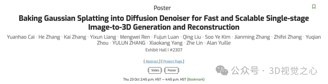 本文设计了一种新的 3D Diffusion framework,将显式的 3D Gaussian Splatting 嵌入其中,能够用于单视角的3D生成重建。目前代码和模型已开源,欢迎大家来用。