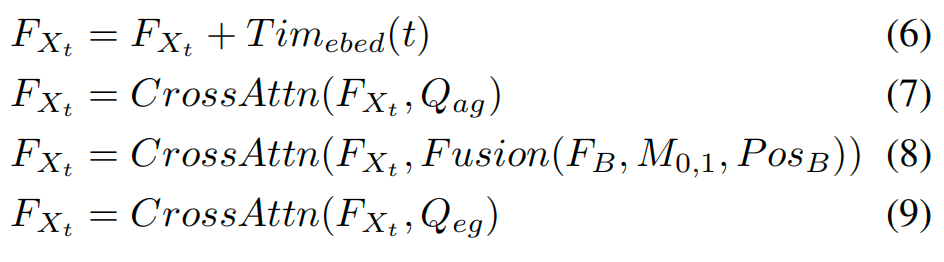。CATG采用无分类器引导的训练方式,将驾驶锚点作为条件信号引导轨迹生成。训练阶段,通过计算轨迹词汇表与真实轨迹(GT轨迹)间的动态时间规整(DTW)距离,选取与真实轨迹最相似的锚点作为条件信号;推理阶段,利用预训练的GTRS评分模型(基于V2-99骨干网络)筛选出可能性最高的前100个锚点,将其作为条件输入以生成多样化且合规的轨迹。(2)目标点:训练阶段,CATG以真实轨迹的终点作为条件信号;测试阶段则相反,以从评分模型获取的锚点终点作为条件控制信号。