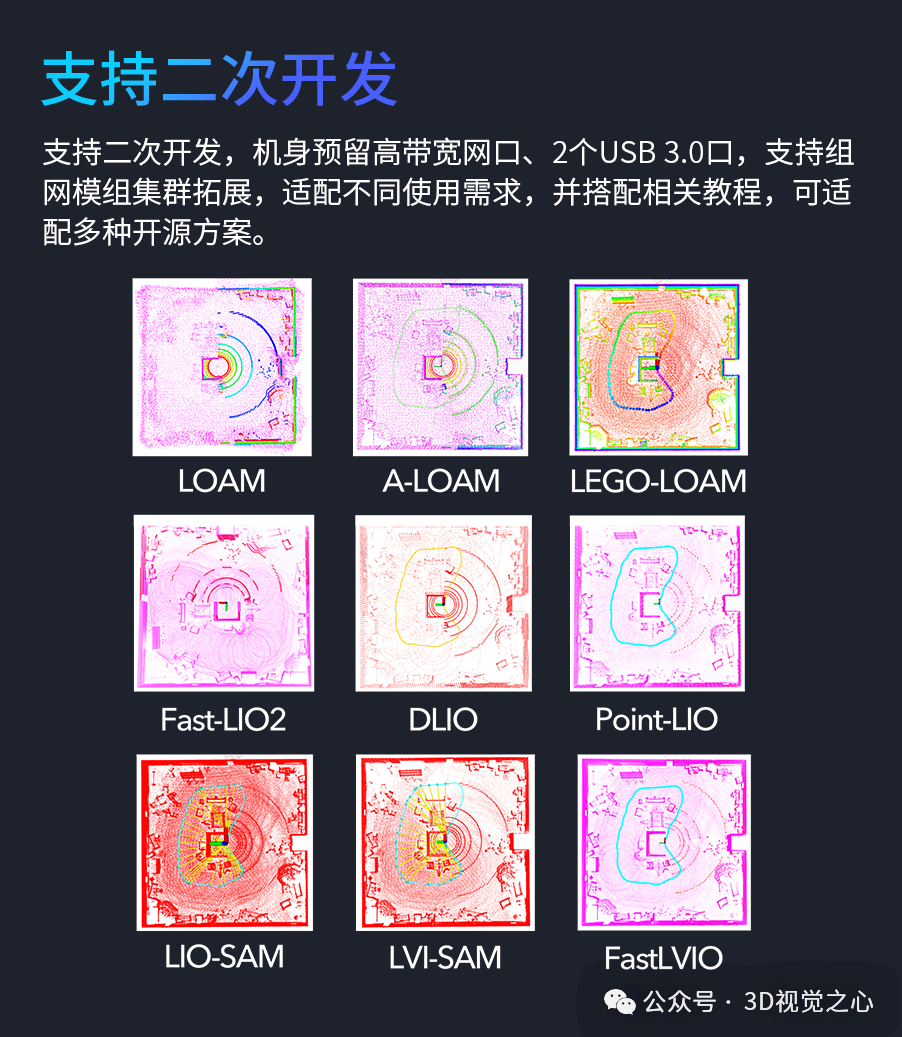 每秒20万级点云成图,70米测量距离,360°全域覆盖,支持20万平米以上的大场景,扫描可选配3D高斯数据采集模块,实现高保真实景还原。支持跨平台集成,配备高带宽网口及双USB 3.0接口,为科研实验提供灵活扩展空间。降低开发门槛,助力开发者快速掌握研发能力,开启更多可能。